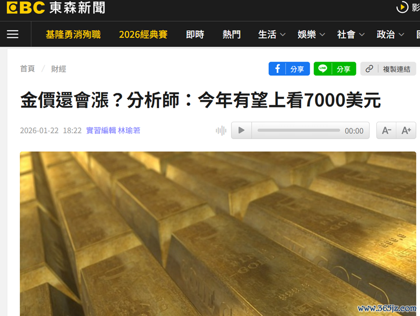 东森新闻则发文称,全球市场避险情绪升温,黄金再一次成为资金涌入的焦点,伦敦金银市场协会(LBMA)公布分析师认为,今年金价可能会突破每盎司5000美元;中国工银标准银行(ICBC Standard Bank)大宗商品策略师杜娟甚至做出分析,认为可能将涨至每盎司7150美元。