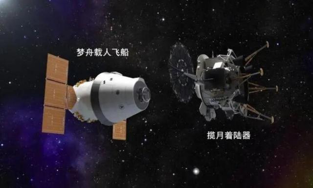 梦舟载人飞船与揽月着陆器(图片来源:央视网)
