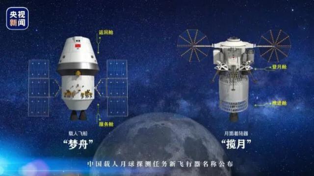左侧是"梦舟"载人飞船,右侧是"揽月"月面着陆器(图片来源:央视新闻)